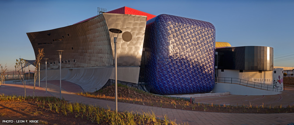 The fissures designed in the Soweto Theatre allow light to penetrate into it’s insides and re-orientation of the self from within.